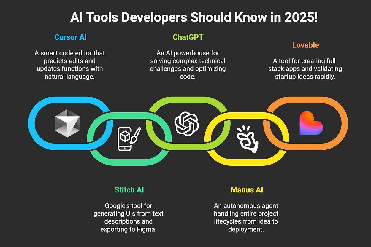 Essential AI Tools for Developers in 2025: Cursor, Stitch, GPT‑5, Manus and Lovable