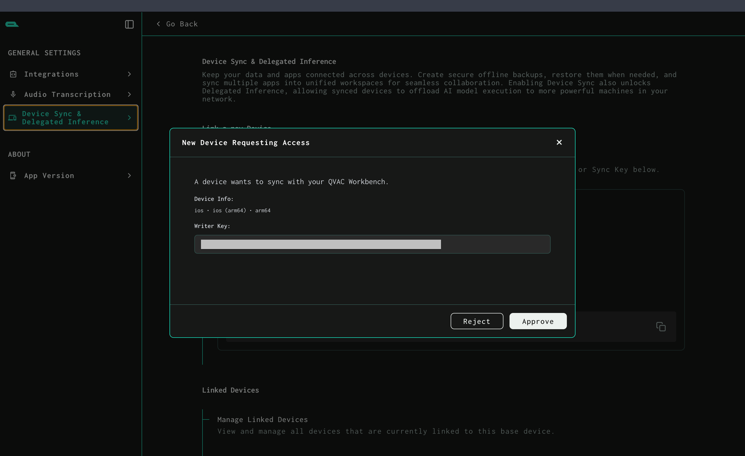 QVAC Workbench Share Device