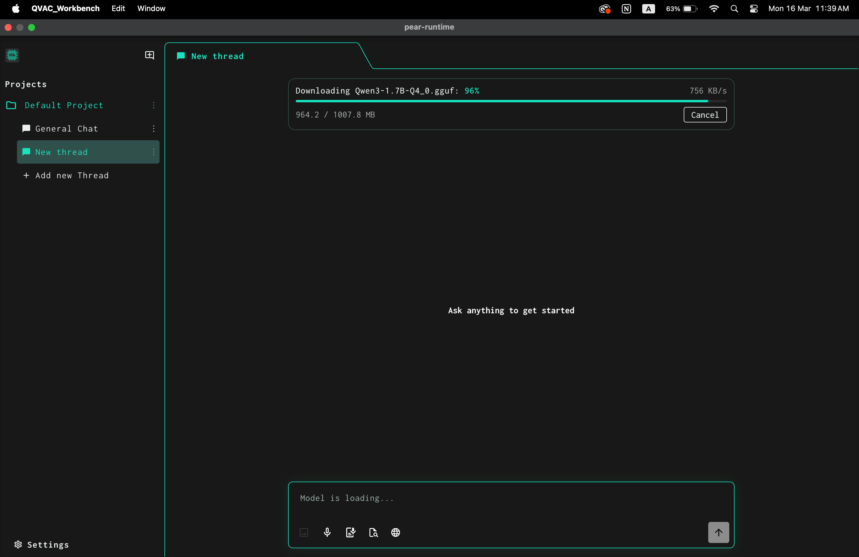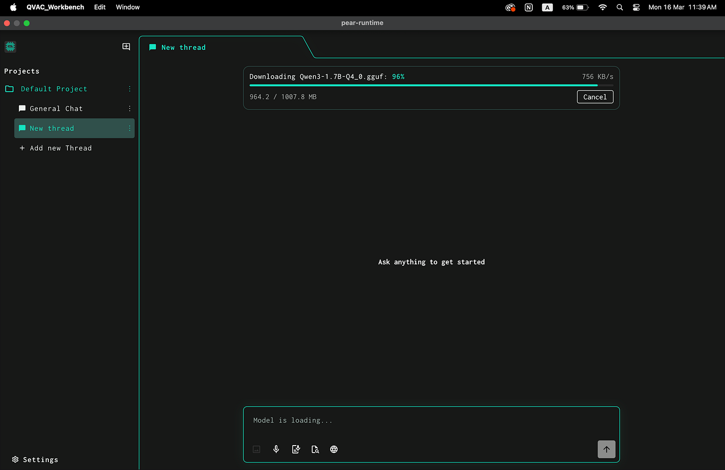 After launching QVAC Workbench you need to download a model.